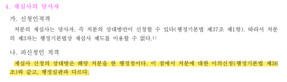 재심사의 당사자 작성자현빈보다는공유죠|작성시간23.07.26|조회수75 목록 댓글 1 글자크기 작게가 글자크기 크게가 안녕하세요 :)밑줄친 부분이 이해가 안가서 질문드립니다. 행정심판에서도 피청구인 적격은 처분을 행한 행정청 아닌가요?무엇이 다른건가요? '해당'이 붙어서 다른건가요..? ㅠㅠ 다음검색 현재 게시글 추가 기능 열기 북마크 신고 센터로 신고 댓글 댓글 1 댓글쓰기 답글쓰기 댓글 리스트 작성자정선균 | 작성시간 23.07.26 행정심판은 처분청이 아니라 행정심판위원회가 심판청구를 담당합니다. 그냥 표현상의 혼란이니까 별로 신경쓸 필요 없습니다. 댓글 전체보기