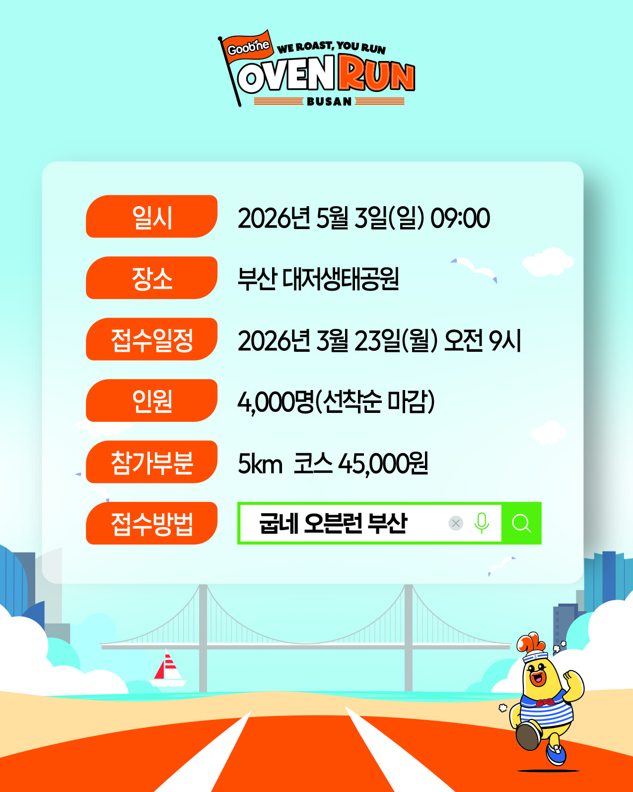3/23(월) 오전 9시! 굽네 오븐런 부산 티켓팅 시작합니다! 작성자슝슝|작성시간26.03.20|조회수7 목록 댓글 0 글자크기 작게가 글자크기 크게가 다음검색 현재 게시글 추가 기능 열기 북마크 공유하기 신고 센터로 신고 댓글 댓글 0 댓글쓰기 답글쓰기 댓글 리스트