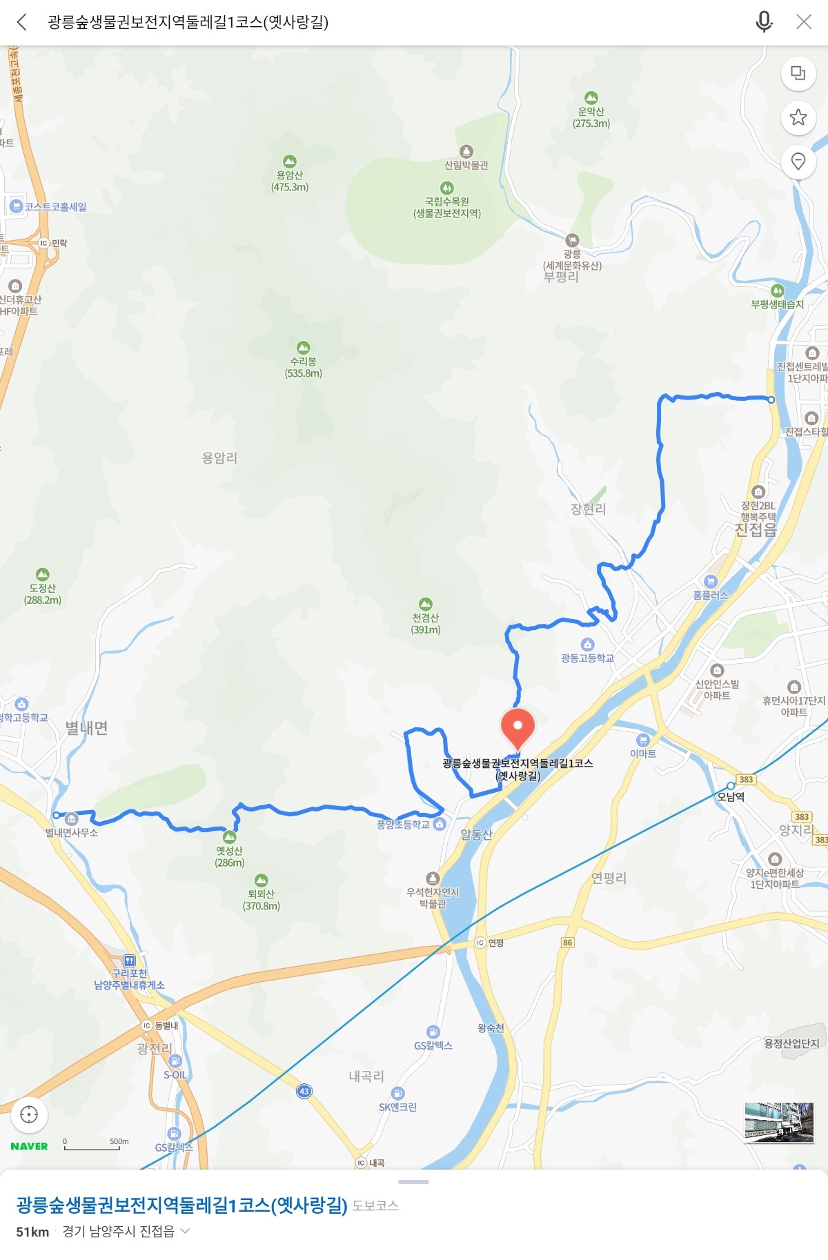 < (광릉숲 둘레길-1코스) 네이버 지도 >