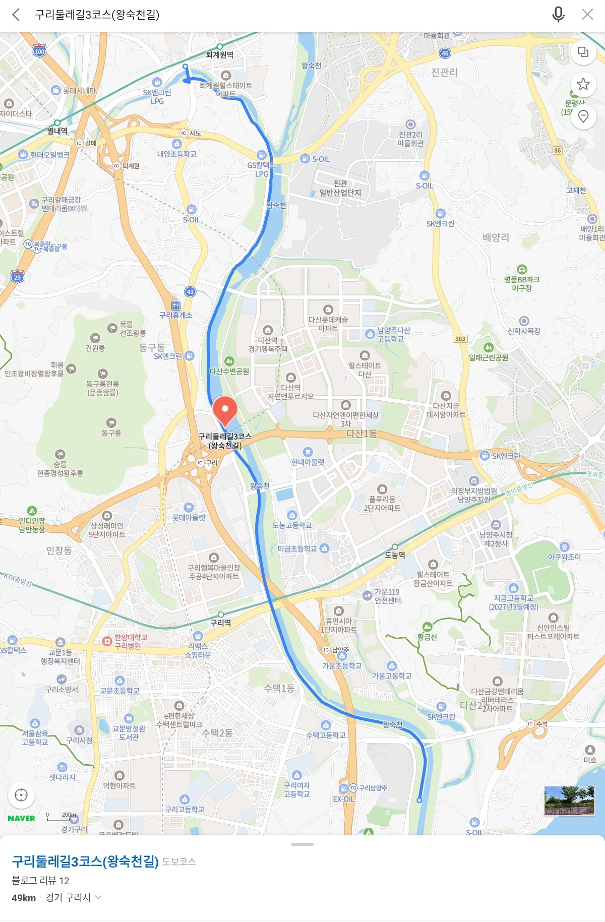 < (구리둘레길-3코스) 네이버 지도 >