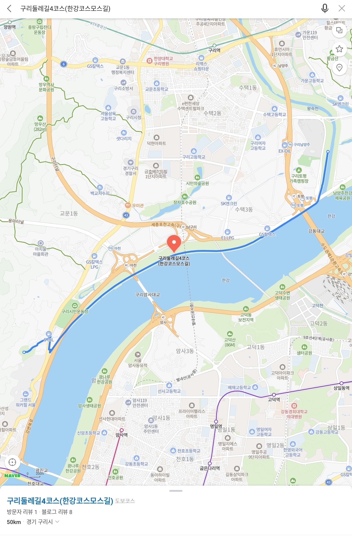 < (구리둘레길-4코스) 네이버 지도 >