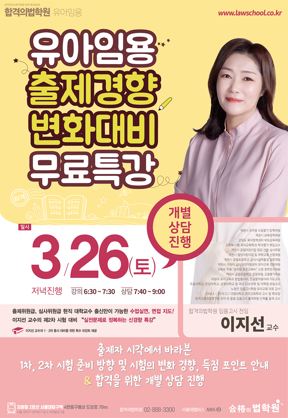 [이지선 교수] 유아임용 출제경향 변화대비 무료특강(개별상담 포함)3/26(토)개강 – 선착순마감유의!