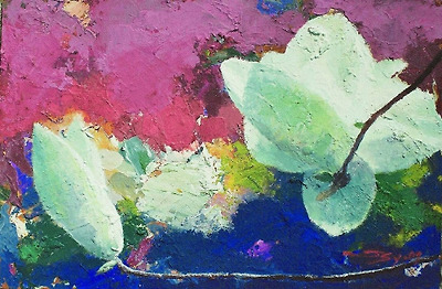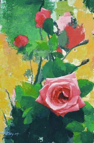 초가집과 보리밭이 즐비했던 고향 동내에 봄이면 어느 집이나 꽃이 많이도 피었었다. 그 때 꽃과 사람들이 사는 보금자리는 같은 모습으로 각인되어 이제 꽃을 그리면 늘 사람 냄새가 난다. 꽃은 다 그리고 싶다. 열심히 추상을 고집했던 때에도 풍경은 다 그리고 싶었다. 거기에 상상이 있고 현실이 있고 내가 그리고 싶은 아름다운 모습들이 늘 있었다. 하나하나 기억들을 되살리지 않아도 표현의 욕심을 채워 줄 소재들은 가까운 곳 어디서나 기다리고 있었다. 색을 음미할까? 현란한 기법을 품어 볼까? 고민해도 자연의 가치는 묵묵부답. 그리고 또 그려도 언제나 그릴것이 남아 있는것은 자연이 살아 있음인가! 그래도 보기 좋아서 꽃을 그리고 언제나 보이는 것이기에 풍경을 그린다. (작업 노트 중에서)