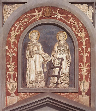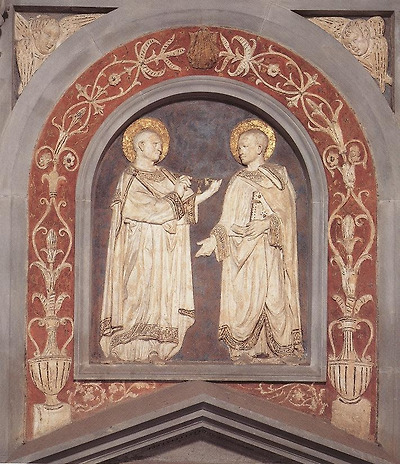 St Stephen and St Lawrence Polychromed Terracotta, 1428-1435 84 5/8 x 70 3/4 inches (215 x 180 cm) Private collection
