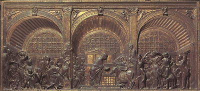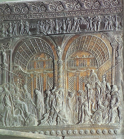 예수의 수난을 보여주는 부조들로 뒤덮인 이 청동 설교단은 일부가 미완성으로 남아