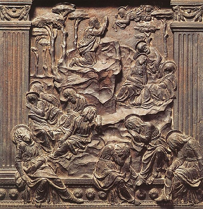 조각에 나타난 회화적 경향은 기베르티가 피렌체 세례당 북문에 이야기가 담긴 부조를 조각한 것에서 비롯된다.