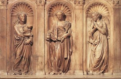 조각적 요소들 사이의 구분을 모호하게 하는 경향이 두드러진다. 산타크로체 교회에 있는 성합에 새겨진 〈수태고지 Annunciation〉와