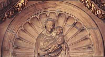 Assumption of the Virgin (detail of the Brancacci tomb) Marble, 1427 21 x 30 5/8 inches (53.5 x 78 cm) Sant'Angelo a Nilo, Naples