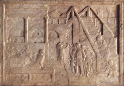 도나텔로는 1420년대부터 1430년대초에 걸쳐 계속 대리석 부조 기법을 개발했으며 그중 최고의 작품으로는