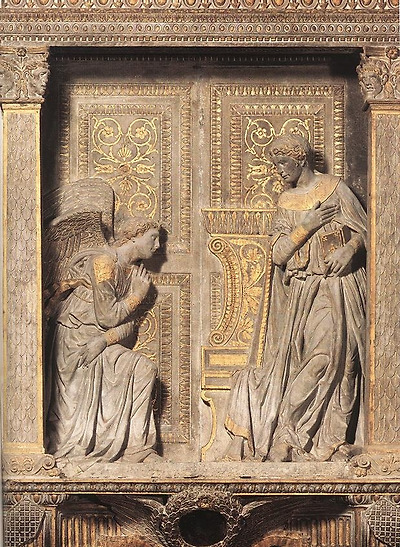 Annunciation - detail Gilded pietra serena, c.1435 85 3/4 x 66 1/8 inches (218 x 168 cm) Santa Croce, Florence