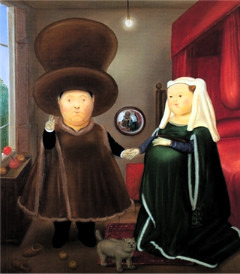보테로는 또 결혼 서약식 장면을 묘사한 얀 반 에이크의 <아르놀피니 부부> 초상화의