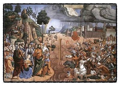 ![]() 모세의 생애③ 홍해로 가는 모세, 프레스코,1481-1482년 작, 350× 572㎝ |