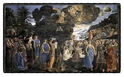 ![]() 예수의 생애 ④ 산상설교, 프레스코, 1481- 1482년 작, 350× 572㎝ |