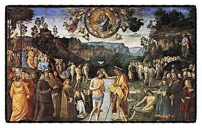 ![]() 예수의 생애 ① 그리스도의 세례, 프레스코, 1482년 경 작, 350× 572㎝ |