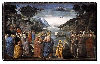 ![]() 예수의 생애 ③ 어부 네 사람을 제자로 부름, 프레스코, 1481- 1482년 작, 350× 572㎝ |