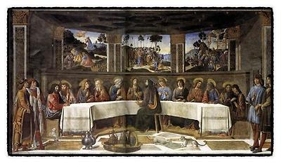 ![]() 예수의 생애 ⑥ 최후의 만찬, 프레스코, 1481- 1482년 작, 350× 572㎝ |