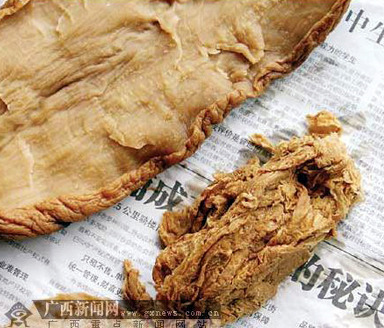 가공 과정에서 '공업용' 합성수지를 섞어 만들어졌다고 전했다.