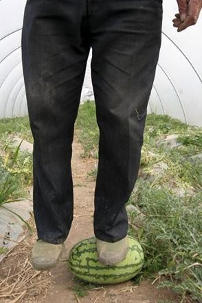 약품 먹인 수박이 지 힘을 못이겨 갈라짐.