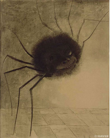 모로나 퓌비가 아카데미 화풍의 환영적인 상징주의를 구사하고 있었다면 오딜롱 르동(Odilon Redon)은 또 다른 상징주의자의 시선으로 그만의 독창적인 작품 세계를 표현해냈다. 1879년 첫 번째 석판화집 [꿈속에서]를 출간하면서 뒤늦게 미술계에 입문한 르동은 1881년경부터 상징주의 문학가들과 교류하며 문학작품을 주제 삼아 그리기도 했다. 대표적인 예로 1882년에 제작한 [에드거 앨런 포에게]라는 6점의 석판화를 들 수 있는데, 포의 작품은 샤를 보들레르(Charles Pierre Baudelaire)의 번역으로 당시 프랑스 문단에 널리 알려져 있었다. 공중에 떠 있는 눈 풍선, 사람의 얼굴을 한 거미 등, 르동 작품의 독창성은 그가 일기에 기록했듯이 “있을 수 없는 존재를 인간과 같이 살아있게 만드는 것”에서 기인하는 것이었다. 1890년대 후반부터 르동은 파스텔, 수채화, 유화에서 색채의 표현 가능성을 발견하고 이를 탐구한 작품들을 남기기도 했다. 상징주의 화가로서 그가 사용한 모호한 암시의 기법은 감상자와의 소통을 통해 의미를 만들어내는 중요한 요소 가운데 하나였다. | |