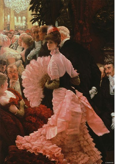 티소는 파리코뮌에 참여했던 경력 때문에 1871년 파리를 떠나 런던에 정착한다. 패션 잡지 배니티 페어에 캐리커처를 그려주면서 에디터와 알게 되었고, 그를 통해 티소는 런던의 고급 사교계에 발을 들여놓을 수 있었다. 에꼴 데 보자르에서 전통적인 아카데미식 교육을 받아 세련된 드로잉과 우아한 색채구사에 능했던 티소는 자칫 딱딱할 수 있는 관습적인 양식으로 당시 상류 사회의 이모저모를 대단히 매력적이고 아름답게 담아냈다. 그의 작품에는 화원에서 차를 마시고, 연못가에서 피크닉을 즐기며, 콘서트와 무도회장을 장식하는 세련된 여인들이 등장한다. 여인들이 입고 있는 드레스의 풍성한 주름 장식, 반짝이는 리본, 화려한 레이스와 다채로운 패브릭의 질감을 찬찬히 살펴보면, 마치 오늘날 패션지의 화보를 보는 것처럼 당시의 최신 트렌드를 파악할 수 있다. 티소는 화가이면서 동시에 쉬크한 패션감각을 갖고 있는 스타일리스트였다.