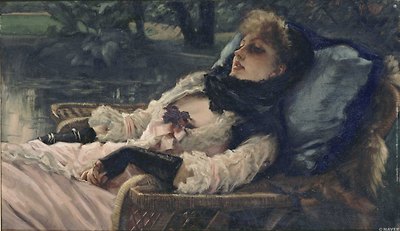 제임스 티소 [명상하는 여인 혹은 여름 저녁] 19세기경 패널에 유채, 34.9cmx60.3cm, 오르세 미술관 © Photo RMN, Paris - GNC media, Seoul 프랑스국립박물관연합(RMN) 지엔씨미디어 작품 보러가기