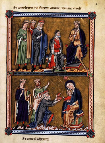 예수님께서는 헤로데 임금 때에 유다 베들레헴에서 태어나셨다. 그러자 동방에서 박사들이 예루살렘에 와서, “유다인들의 임금으로 태어나신 분이 어디 계십니까? 우리는 동방에서 그분의 별을 보고 그분께 경배하러 왔습니다.” 하고 말하였다. (중략).... 그들은 임금의 말을 듣고 길을 떠났다. 그러자 동방에서 본 별이 그들을 앞서 가다가, 아기가 있는 곳 위에 이르러 멈추었다. 그들은 그 별을 보고 더없이 기뻐하였다. 그리고 그 집에 들어가 어머니 마리아와 함께 있는 아기를 보고 땅에 엎드려 경배하였다. 또 보물 상자를 열고 아기에게 황금과 유향과 몰약을 예물로 드렸다. (마태오 2,1-11)