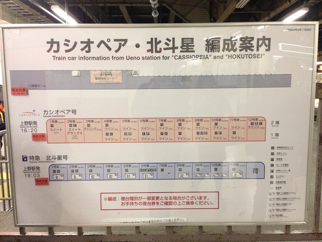2월 13일 우에노를 출발해서 삿포로로 향하는 카시오페아를 보러 다녀왔습니다.