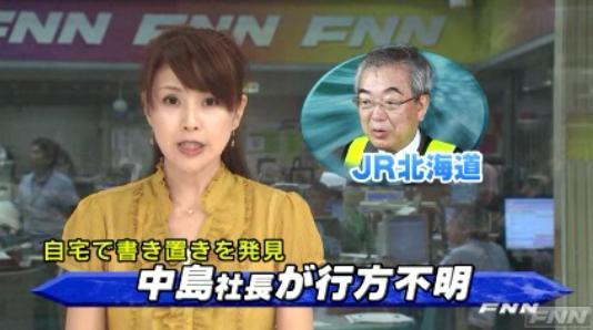 JR北海道社長が行方不明 自室に書き置き, 日本テレビ系(NNN)[9月12日(月)21時39分]