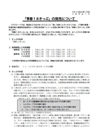 [2010년 봄의 「청춘 18 킷푸」프레스 릴리스.「겨울의 발매는 별도 알려 드리겠습니다」라고 표기되고 있다.