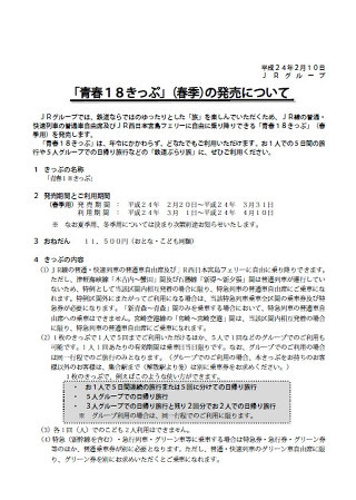 2012년 봄의 「청춘 18」프레스 릴리스는 춘계판에만 「하계・동계의 발매는 별도 알려 드리겠습니다」라고 표기]