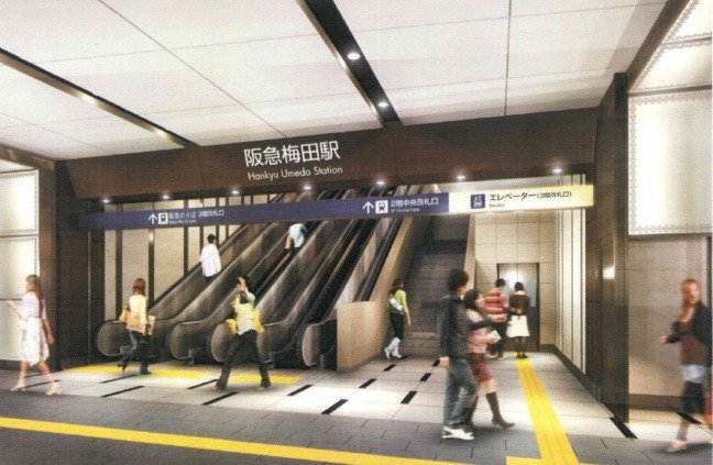이미 일본 최대급의 사철(私鉄) 터미널인 한큐 우메다역에서는, 재개발이 진행되고 있는 오사카 우메다 지구의 '얼굴'에