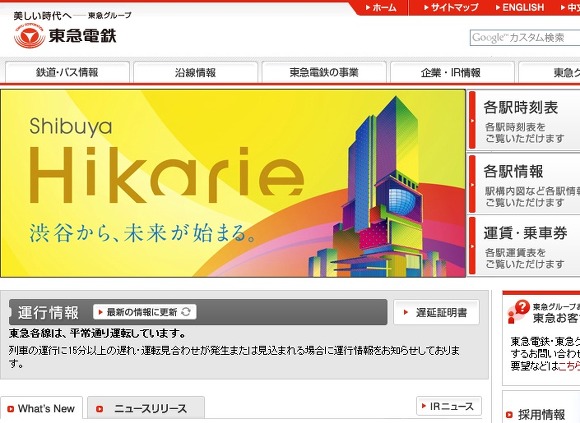 도쿄 급행전철(東京急行電鉄: 도큐)은 지난 달 2012년 4월 26일에, 도쿄・시부야(渋谷)역 동구(東口)로 바로 연결되는