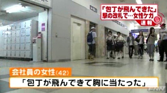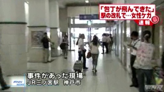 효고현・고베시(兵庫・神戸市)의 JR산노미야역(三ノ宮駅) 구내에서, 걷고 있던 한 여성이 가슴에 날라 온 부엌칼에