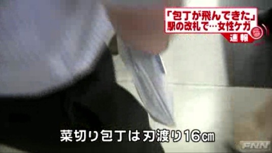발밑에 부엌칼이 떨어져 있었다고 하며, 부상 입은 여성도「부엌칼이 순식간에 날아온 것 같다」라고 진술했다.