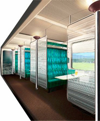 최대의 넓이를 갖는 일본식 개인실・서양식 개인실과 그룹 여행에 적절한 살롱석을 그룹석 차량에 설치한다고 한다.