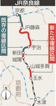 複線化延長で合意 JR奈良線、府と沿線市町など