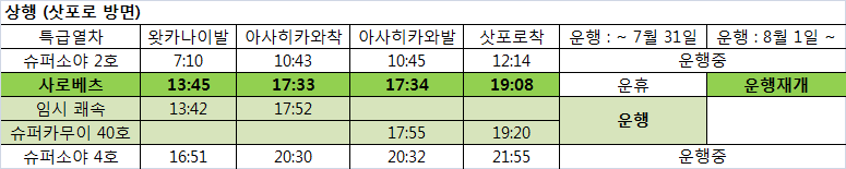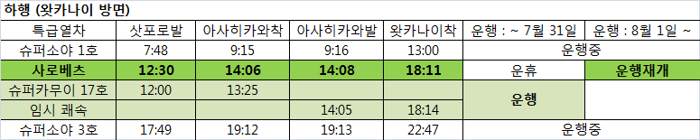 *삿포로-왓카나이 특급열차 시각표 (사로베츠, 슈퍼소야)
