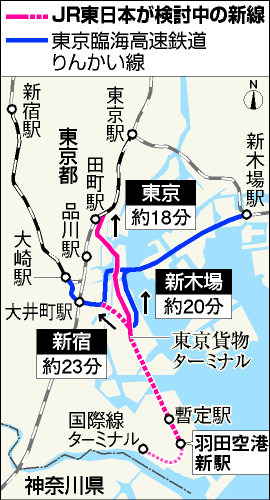 동일본여객철도(JR동일본)는 19일 도쿄와 신주쿠 등 도쿄 도심과 하네다공항(羽田空港)을 잇는 신 노선 구상을 발표했다.