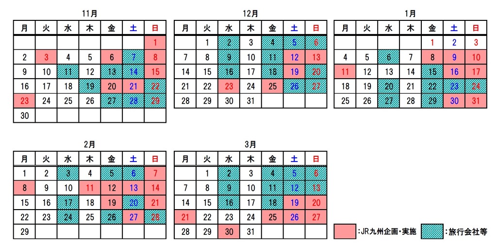 빨간색 - JR큐슈기획・실시분