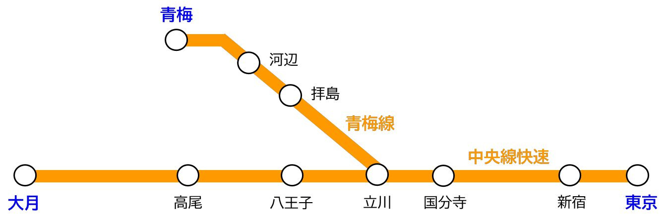 100km 까지: 통상 1,260엔, Suica 그린요금 1,000엔 (토쿄-오츠키, 오메/ 신쥬쿠-오메)