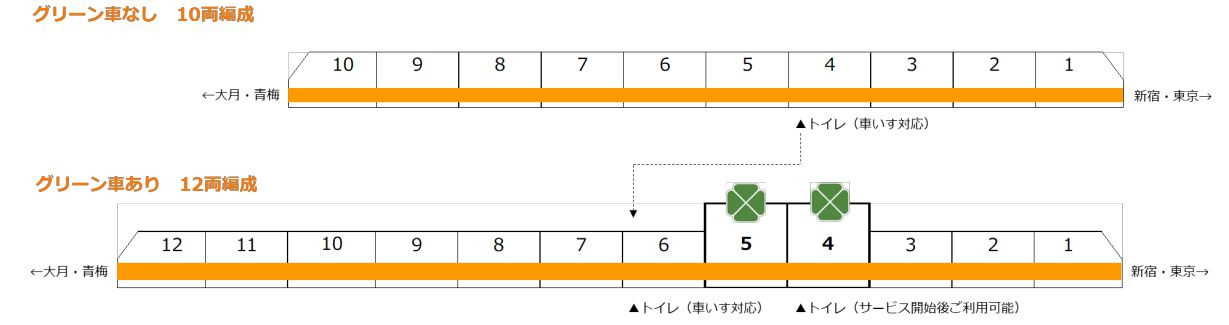 그린샤는 4,5호차에 설치되며, 이로 인해 E233계 0번대 차량은 10량 편성에서 12량 편성으로 증편됩니다.