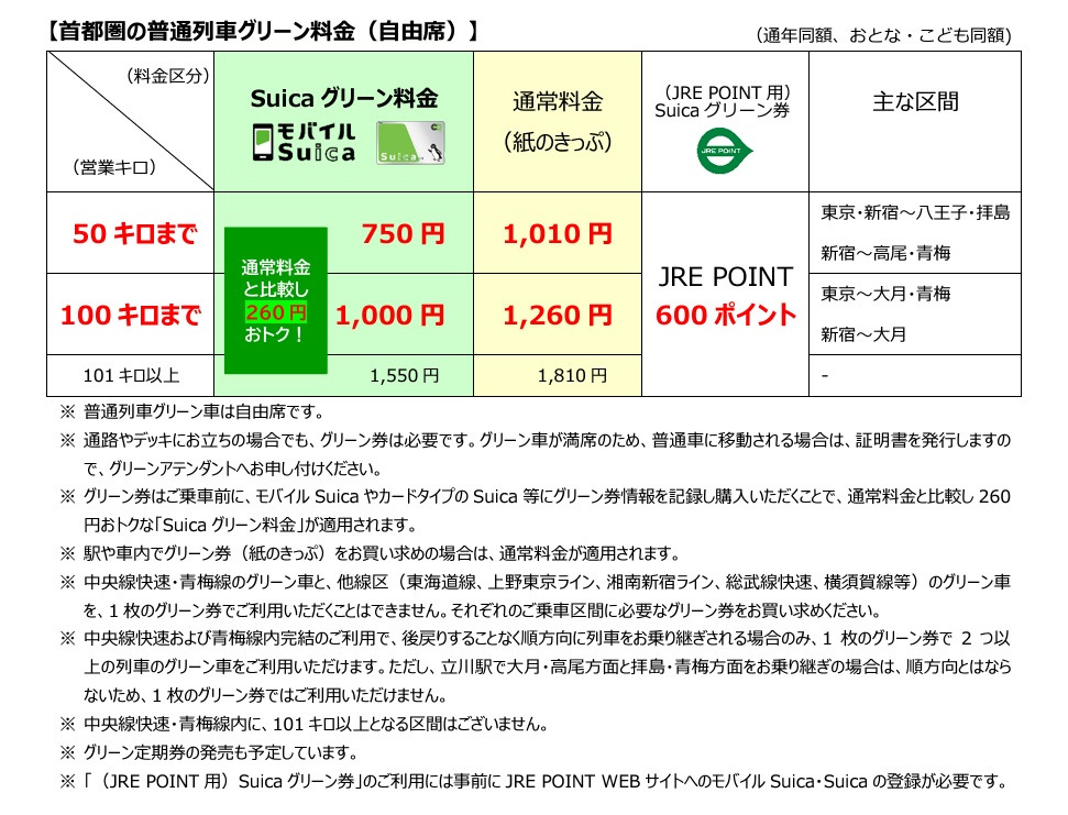 Suica 그린요금은 그린샤 승차 전에, 모바일 Suica나 카드 타입 Suica 등에 그린권 정보를 기록하고 구입한 경우에 한해 적용
