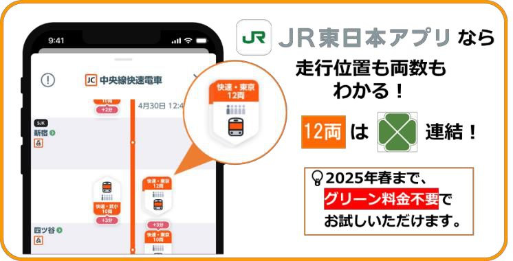 이 기간동안 2층 그린샤를 무료로 이용하려면, JR동일본 공식 어플인 "JR東日本アプリ"앱에서 이용할 열차가 12량 편성인지 확인해야 합니다.