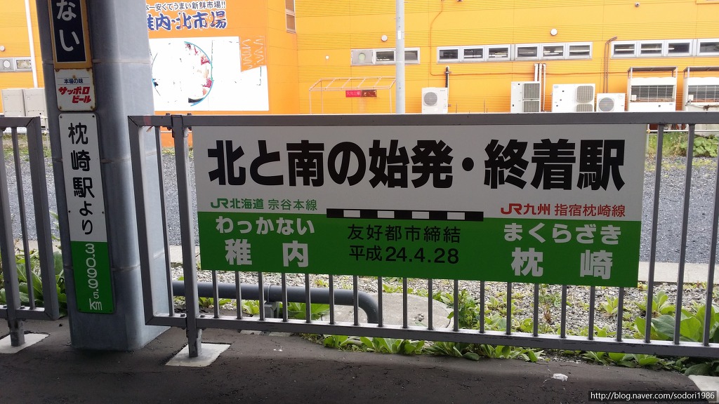 ※ JR선로 중에 최남단 역은 이부스키마쿠라자키선 니시오야마역(西大山駅), JR 및 사철 선로 중에 최북단 역은 소야 본선 왓카나이역(稚内駅)이라 팻말에 적혀있습니다.