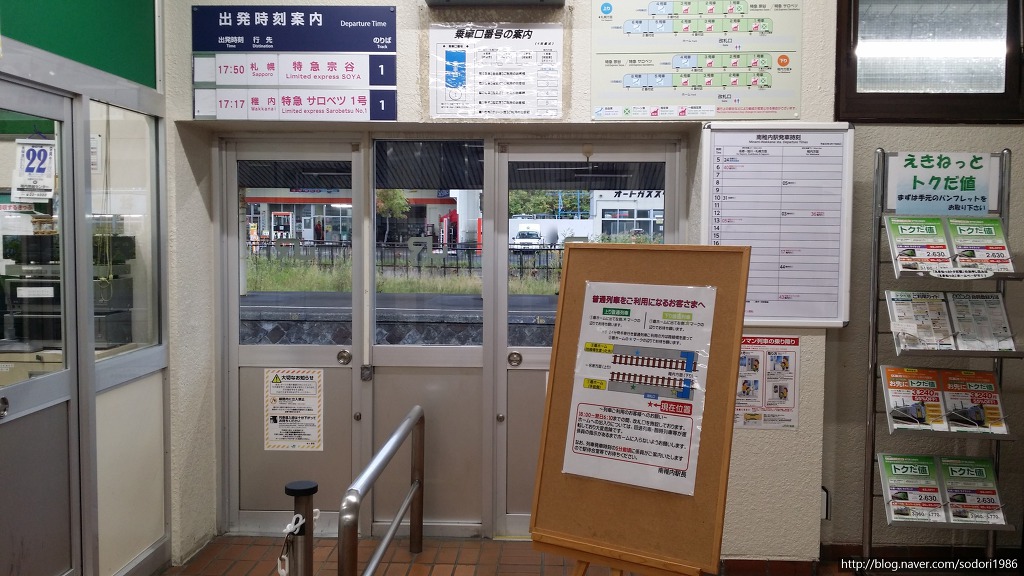 사진 오른쪽 중간에 있는게 미나미왓카나이역 열차 시간표입니다.