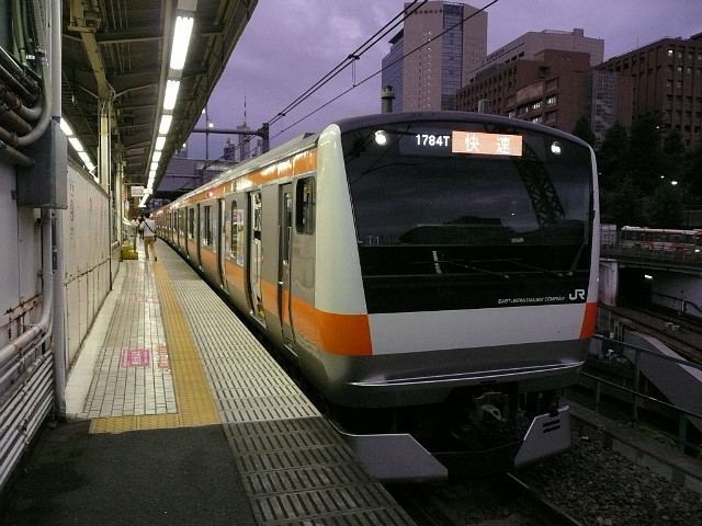 그렇게 설정이 되어 있는 것인지는 모르겠습니다만 심지어 츄오선과 소부선의 도착시간이 맞춰지는 경우도 상당히 있습니다. 내리면 바로 앞에 갈아탈 열차가 있는거죠.