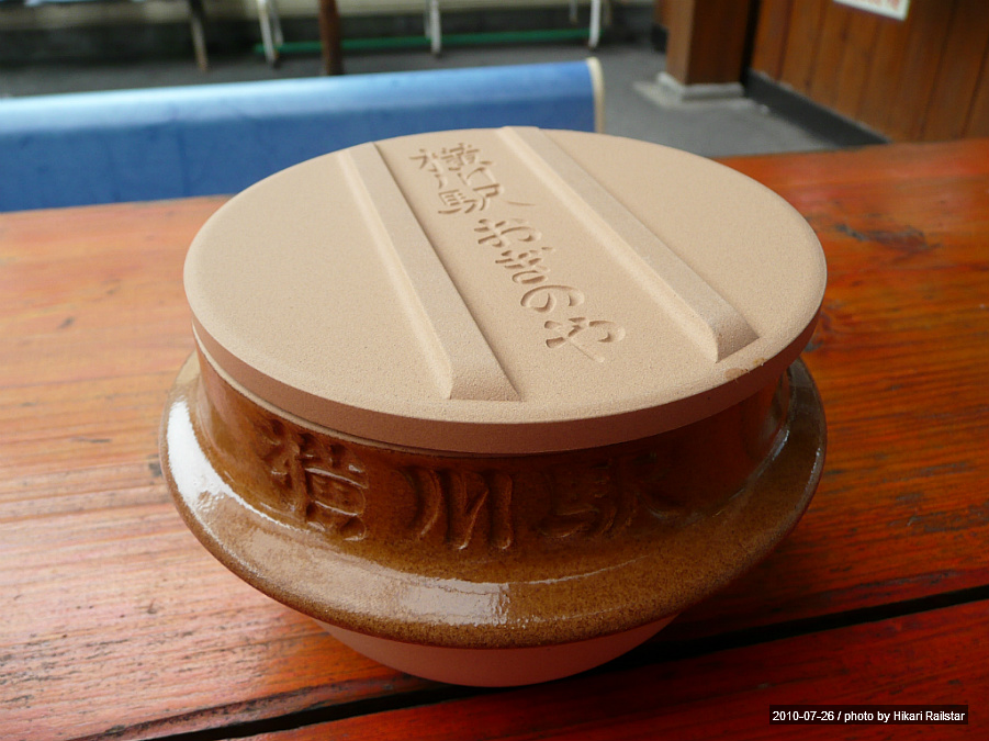 [사진 447. 그릇에도 요코카와역이라는 글이 새겨져 있습니다. 처음에는 플라스틱그릇인 줄 알았는데 너무 무거워서 다시 보니 진짜 도자기그릇이더군요.^^]