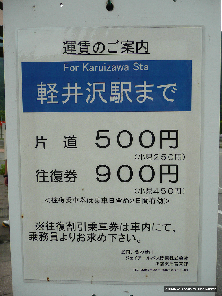 [사진 449. 카루이자와까지의 편도요금은 500엔, 왕복은 900엔입니다.]