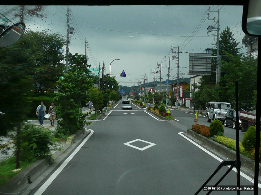 [사진 460. 시간이 되어 버스가 출발합니다. 요코카와역 앞을 출발하고 있습니다.]