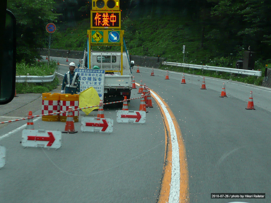 [사진 471.도로보수 공사인 모양입니다. 차선 하나를 통제하고 작업중이었습니다. 버스는 안내에 따라서 옆 차선으로.]